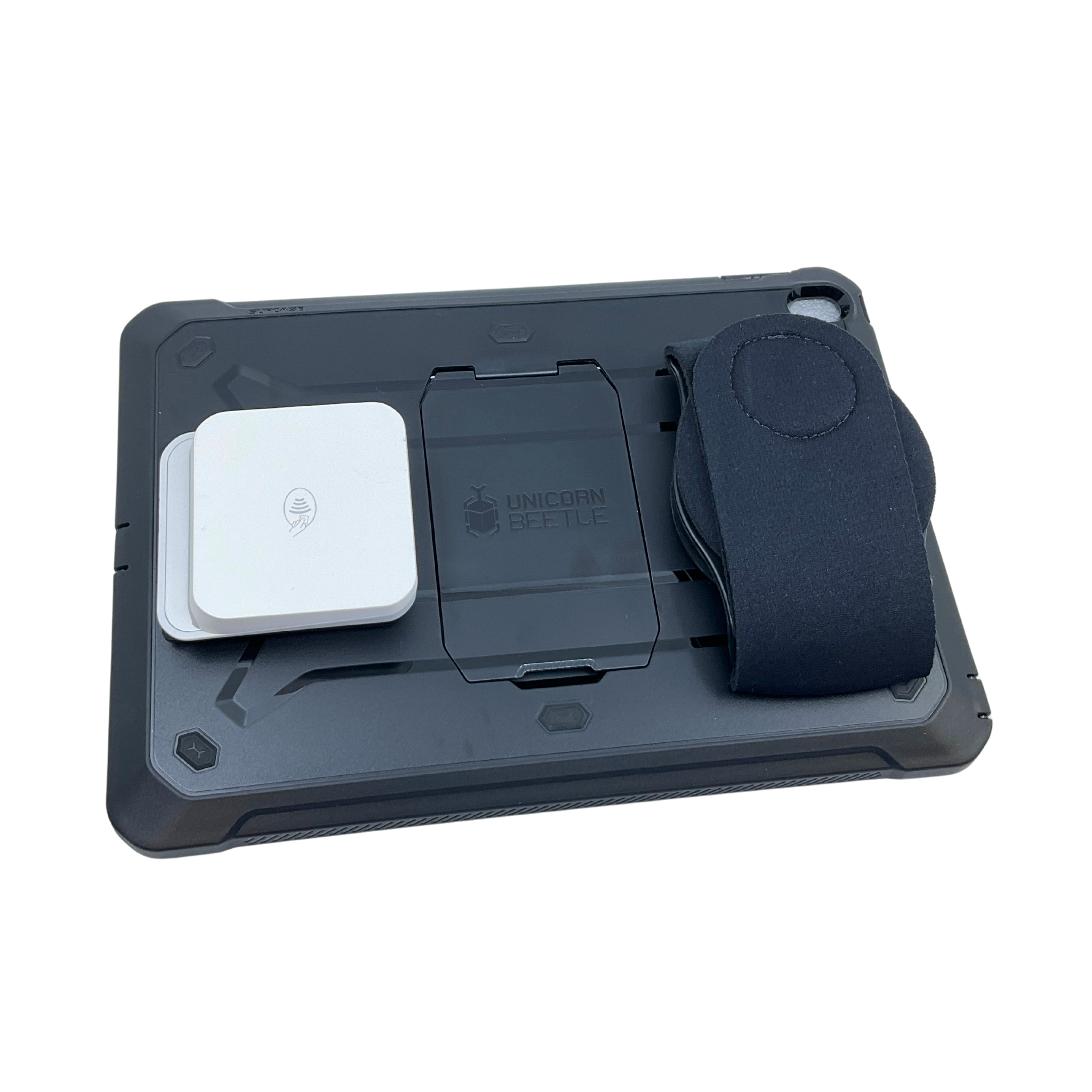 Reliable and comfortable tablet holding; use as a hand grip, or hand strap, the Handeholder™ provides secure hold, ergonomic comfort and versatile modular function for most cased or uncased tablets and e-readers.